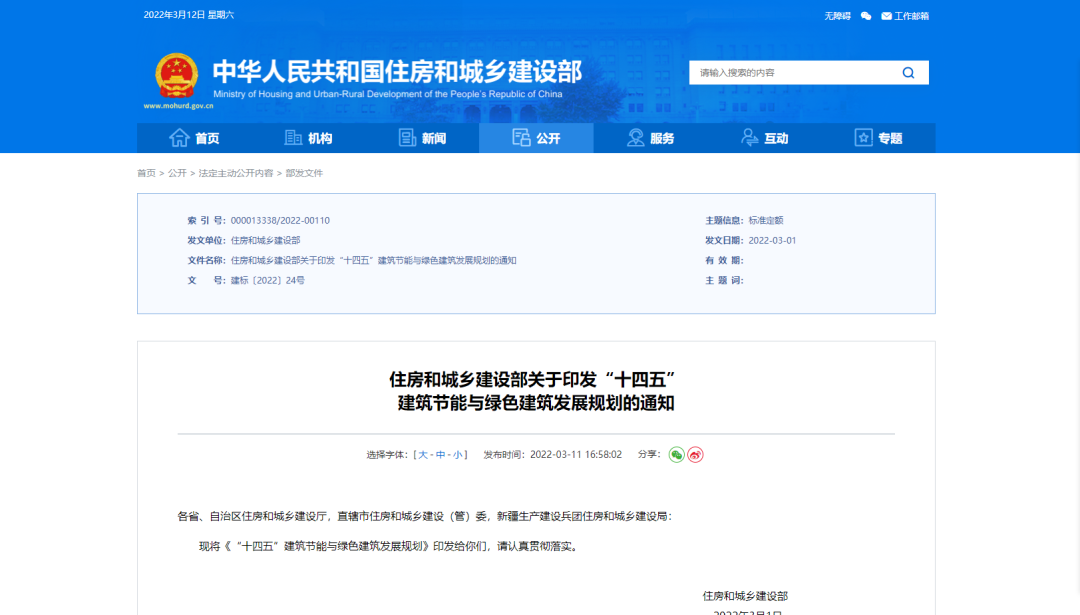 住房和城鄉建設部關于印發“十四五”建筑節能與綠色建筑發展規劃的通知。