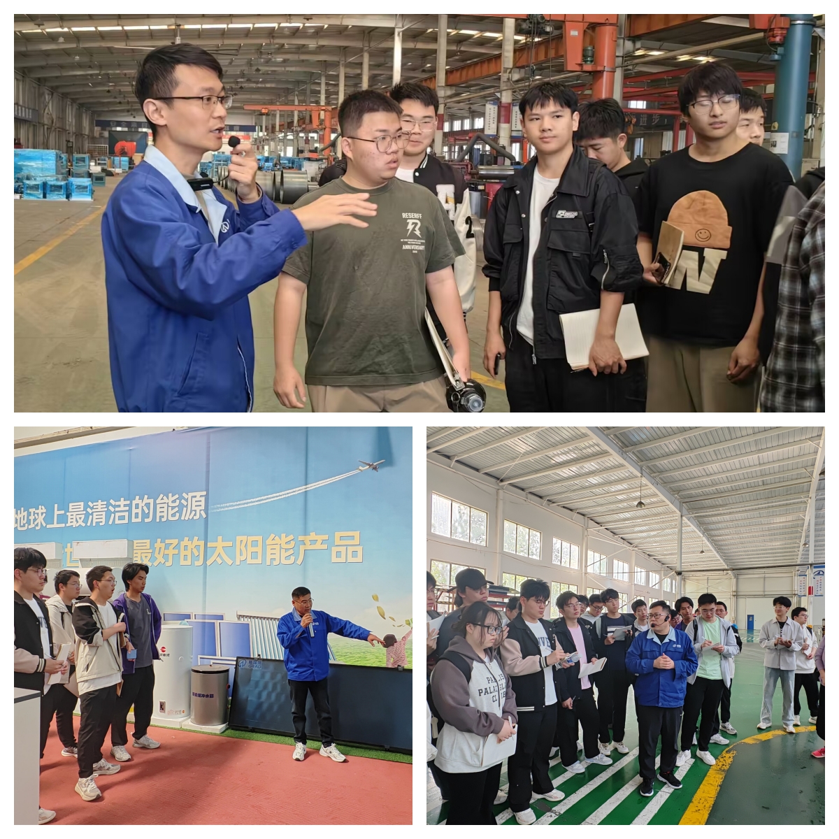 在后續的實習安排中,河北工業大學師生一行分別前往格瑞德潔凈空調工程公司、能源工程公司、通風人防工程公司以及太陽能分公司進行參觀學習。每到一處,都有專業的技術人員為學生們進行產品理論知識的講解,并帶領他們深入車間生產線,實地感受產品的生產過程。