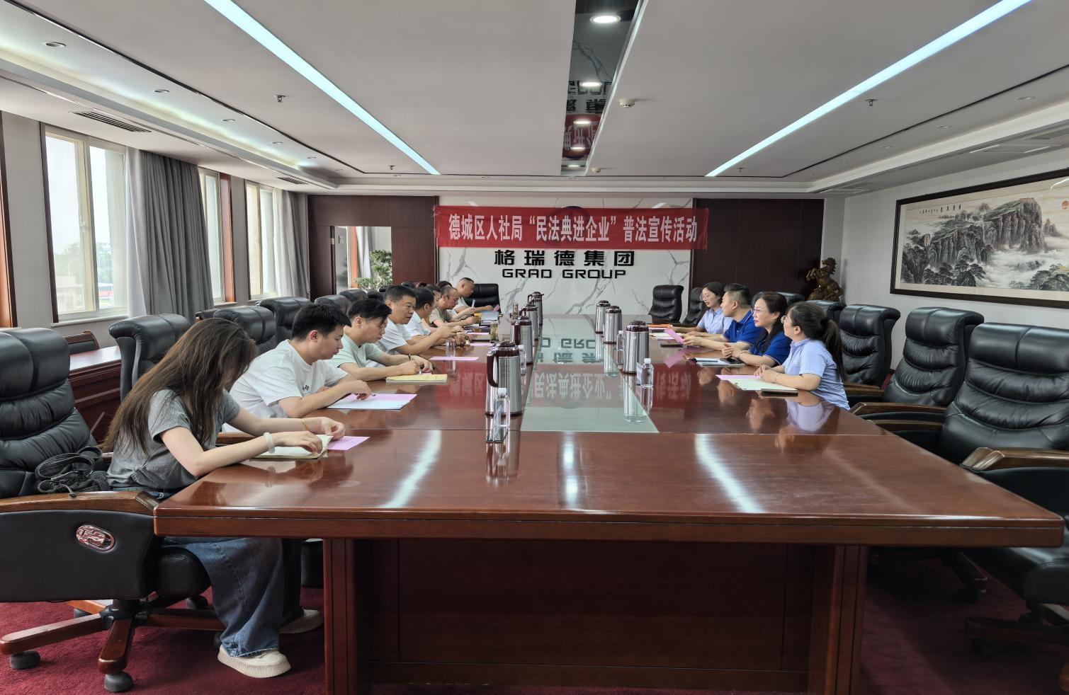 近日,德城區人力資源和社會保障局副局長許萬家一行蒞臨格瑞德集團進行普法宣傳活動。格瑞德集團總經理王志軍及相關負責人陪同接待并參與普法宣傳活動。