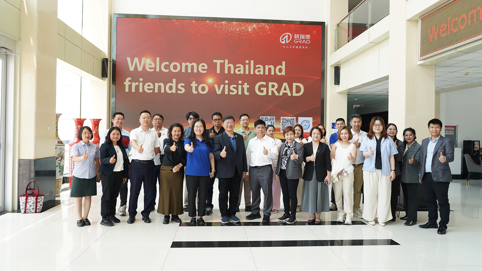 上午,由20多名泰國企業家組成的考察團隊蒞臨格瑞德集團參觀考察,格瑞德國際貿易工程公司總經理扈淑君率隊熱情接待。在展廳參觀過程中,來自泰國的企業家對格瑞德集團多元化產業鏈表示贊賞,并對格瑞德太陽能產品、玻璃鋼管道等產品興趣濃厚,并表示具有合作機會,可以推進下一步商務對接。