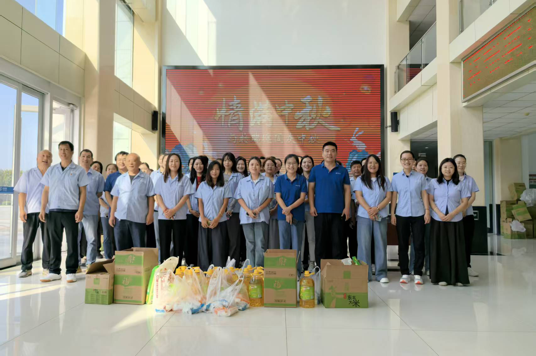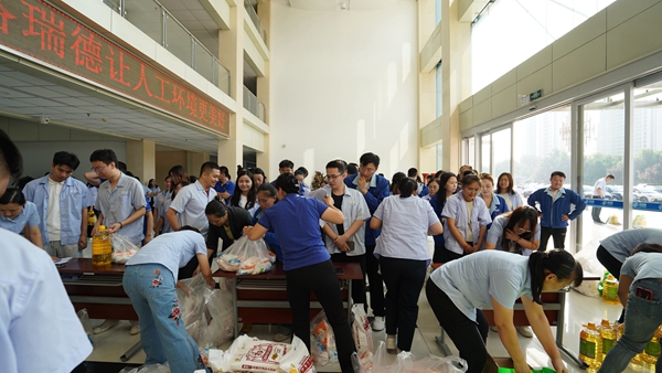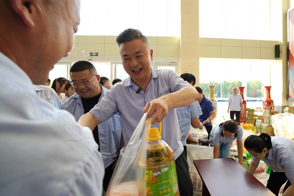 一份份承載著公司關懷的福利品發放到員工手中,同時也代表著公司向每一位員工及員工家屬的關懷與中秋祝福。