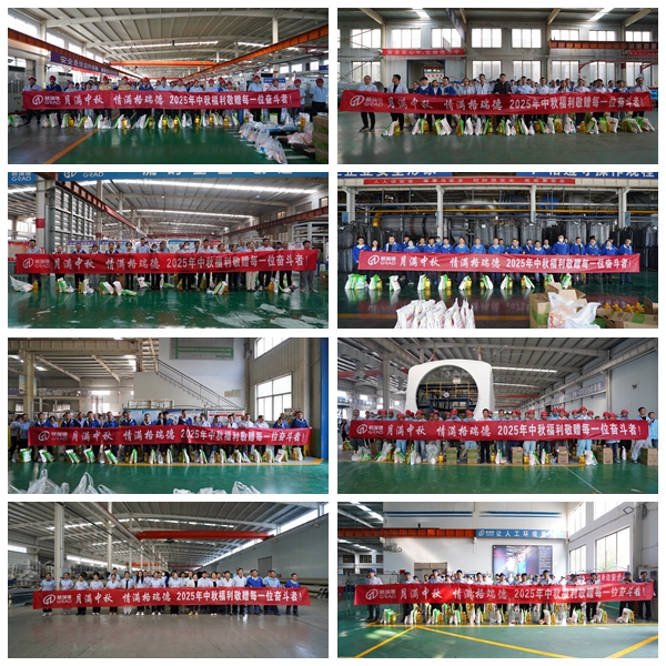 又是一年中秋月,恰逢人間好時節。在2025年中秋佳節來臨之際,為感謝格瑞德職工的辛勤付出,在集團黨總支的堅強領導下,在格瑞德董事會領導的支持下,格瑞德工會于9月30日,為全體職工發放中秋節暖心福利,并舉行了發放儀式,集團公司總經理王志軍代表集團領導向全體職工們辛勤付出表示感謝,并送去節日問候和祝福,各分公司總經理慰問基層一線的工人,并送上祝福和福利物資,員工們紛紛露出了幸福滿足的笑容,廠區充滿了中秋節日的歡樂氣氛。