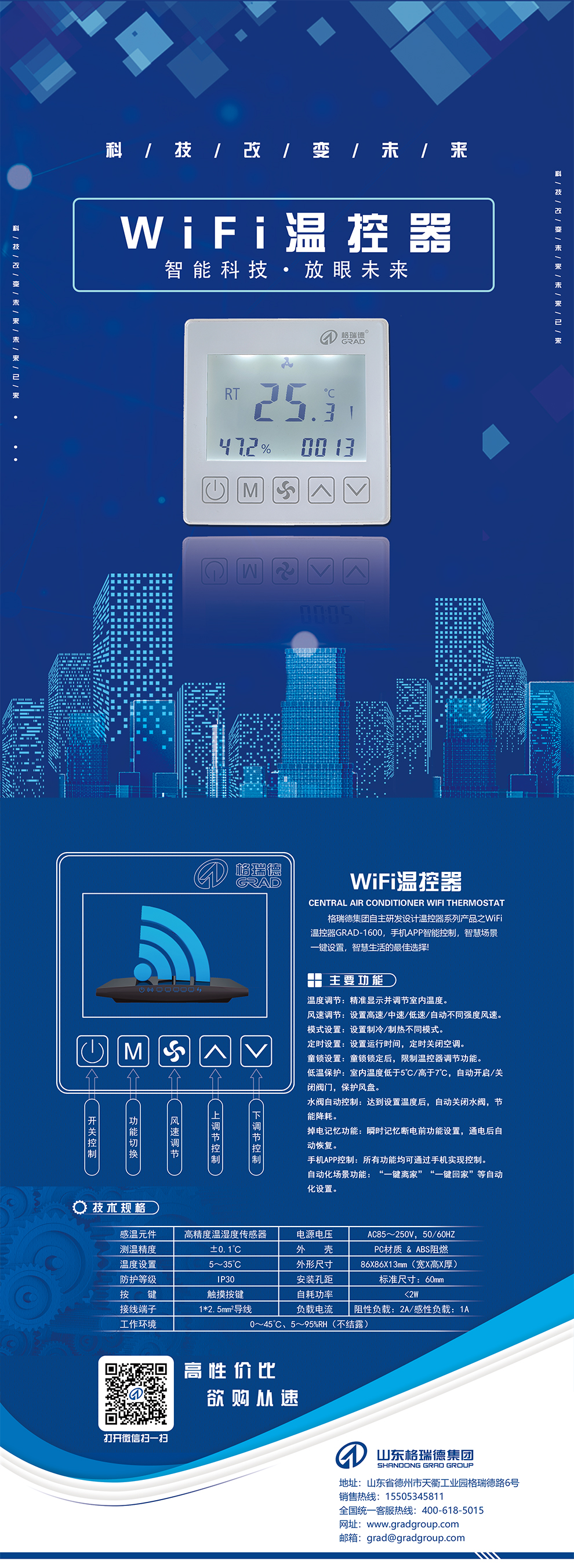 格瑞德1993年建立于山東德州,目前是一家圍繞人工環境,橫跨新能源、新材料、裝備制造、節能環保、信息技術五大戰略新型產業的企業集團。格瑞德進行全球化業務運作,產品和服務遍布全國的每一個省市和全球五大洲的100多個國家和地區,廣泛應用于基建工程、商業地產、工業制造、農業開發、電子信息、車輛工程、環保處理、醫藥凈化、海洋工程、軌道交通等領域。格瑞德從業人員過萬人,在山東、貴州、四川、新疆、內蒙等地建有生產基地,在上海、北京、濟南、蘭州以及美國洛杉磯建有研發中心。