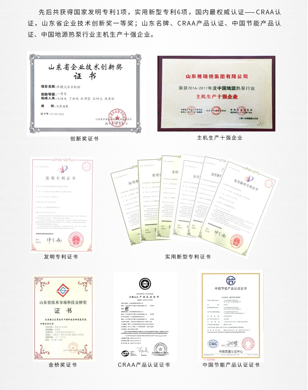 擁有國家機電設備安裝壹級資質,環境保護工程二級資質,建筑裝修裝飾工程專業承包二級資質,鋼結構工程三級資質,并獲得了中國制冷空調設備維修安裝資質,集團生產的空調產品獲得國家制冷設備生產許可證,3C中國國家強制性產品認證、CRAA中國制冷空調行業權威性產品性能認證,壓力容器國家特種設備設計、制造許可證,制冷主機、風機產品榮獲中國節能產品認證。